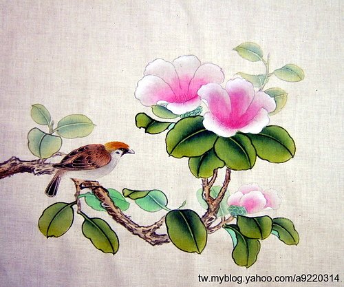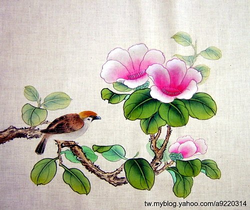7.雀鳥背部先上赭石;腹部再上白粉。