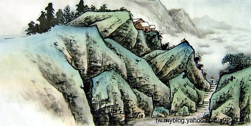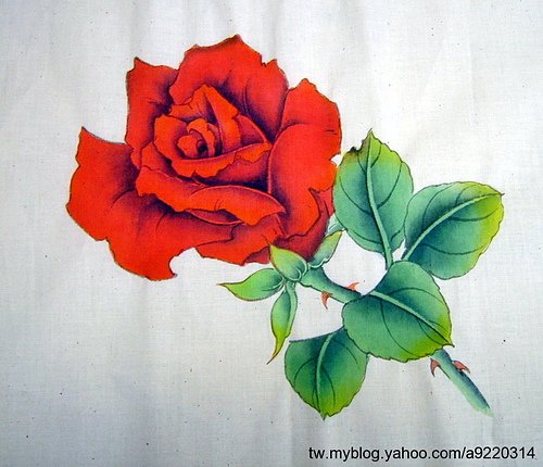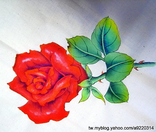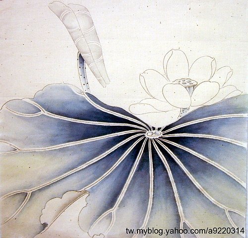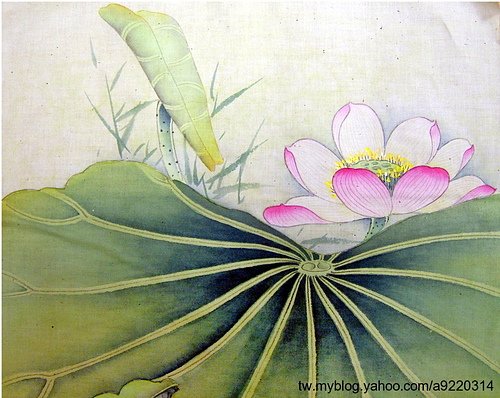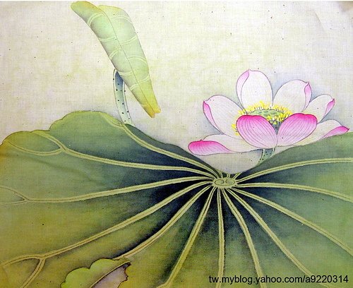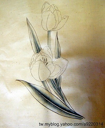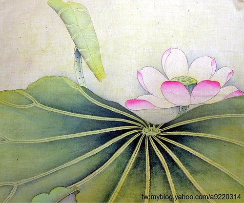 五.用花青加藤黃調成芽綠罩染蘭葉正面,背葉部份可用石綠加少許藤黃罩染。