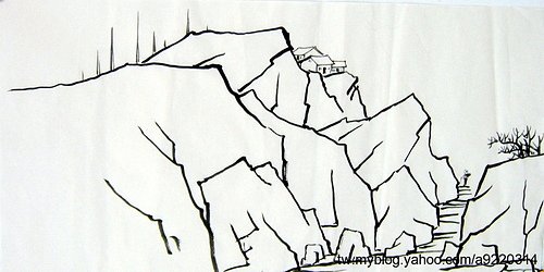 步驟一.先用中鋒勾描竹子,用筆要沉穩,並注意線條濃淡、輕重和提按的表現。