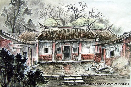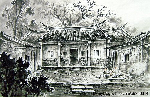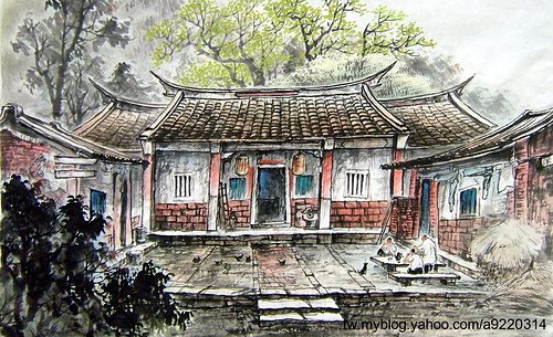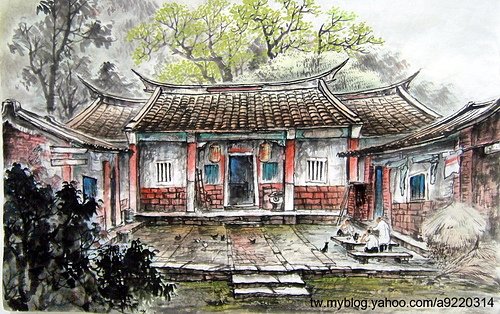 古厝庭院前的家离,雞鴨點白粉和朱硃增加變化