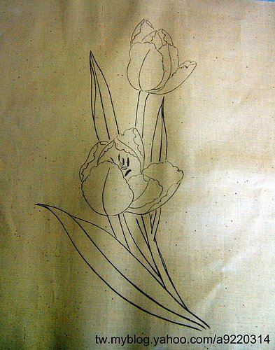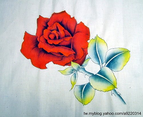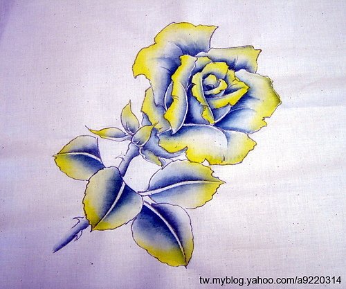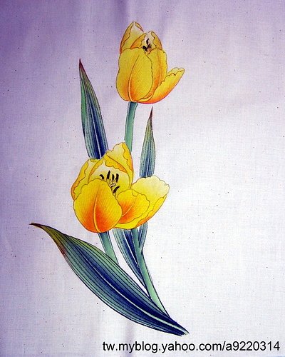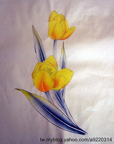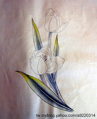 三.蘭蕊內部先淡染黃綠色,待乾後,蘭花花瓣前端可分染桃紅色 。
