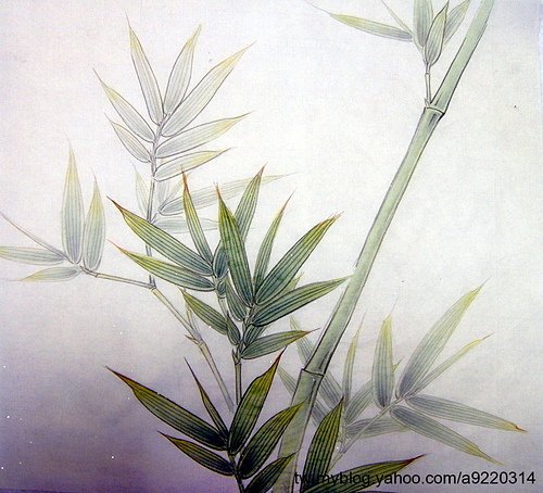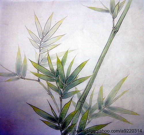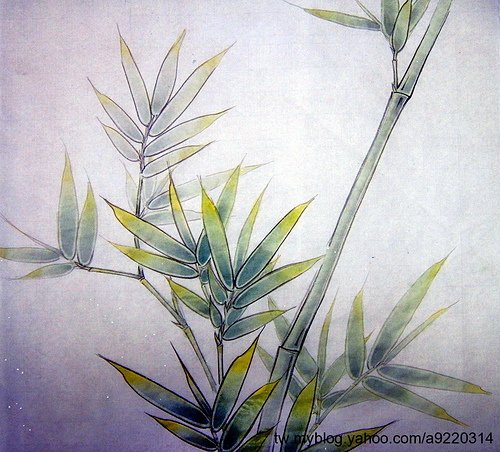 步驟四:用花青和藤黃調成芽綠色,淡淡的罩染竹葉和 竹枝 。