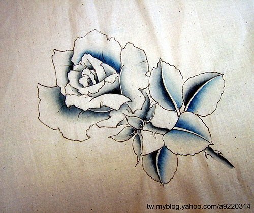 步驟二:上花青時,注意前後濃淡層次的空間表現。