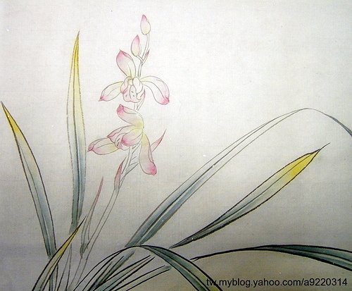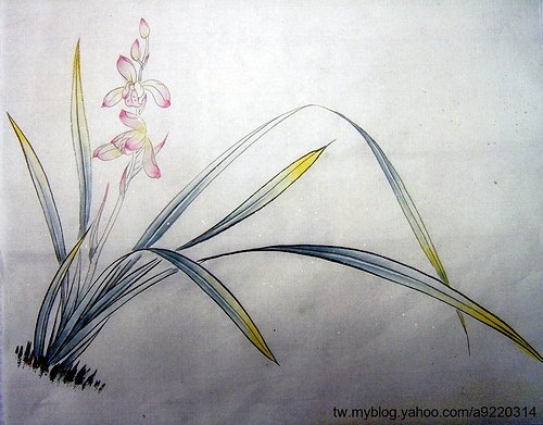 四.蘭花花朵部份淡淡罩染一層白粉。