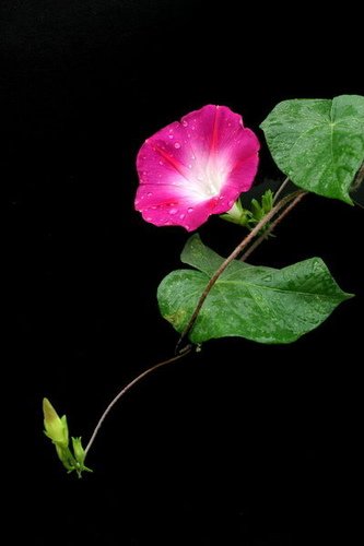 牽牛花屬旋花科花朵有紫紅、紫藍、白、粉紅等多种顏色, 形呈喇叭型(故又稱喇叭花)是一年生纏蟯蔓性草本值物。