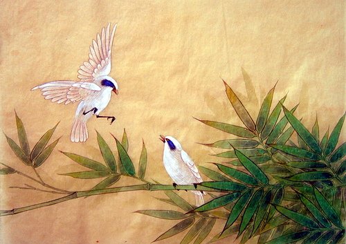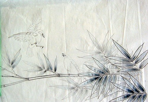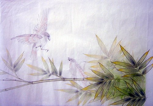 2.用花青加藤黃將調成芽綠色,後罩染竹葉。