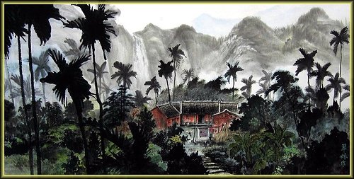 每每欣賞著老師那氣勢磅礡或靈氣氤氳的山水,心裡就有一股莫名的感動。滿心的喜悅也想要塡滿那中間的空白,但、、但、、筆下那山??那樹?水??猶如颱風洗禮過般的不堪。筆一枝一枝地換、不行!還是不行,難道、難道、竟是手嗎?一仟多個日子説長不長、卻足以讓那曾經努力所擁有的一點點自豪變為虛無,退回原點。一切的一切需從頭開始、可那一枝小小的毛筆卻如千金般重,心裡的沮喪無法言喻、只有不斷的鼓勵自己再一次。勉強提筆、草草結束、總提不起勁。明日復明日、勉強還是有些成效的,雖然無法跟以往相提並論、不襟心生喜悅。終於明白 「不行」 非筆之罪、非手之禍?是心之惰也。
